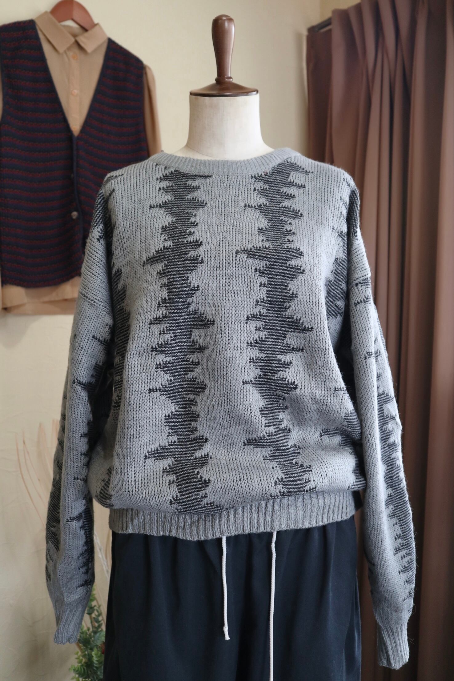 アクリル デザイン セーター グレー