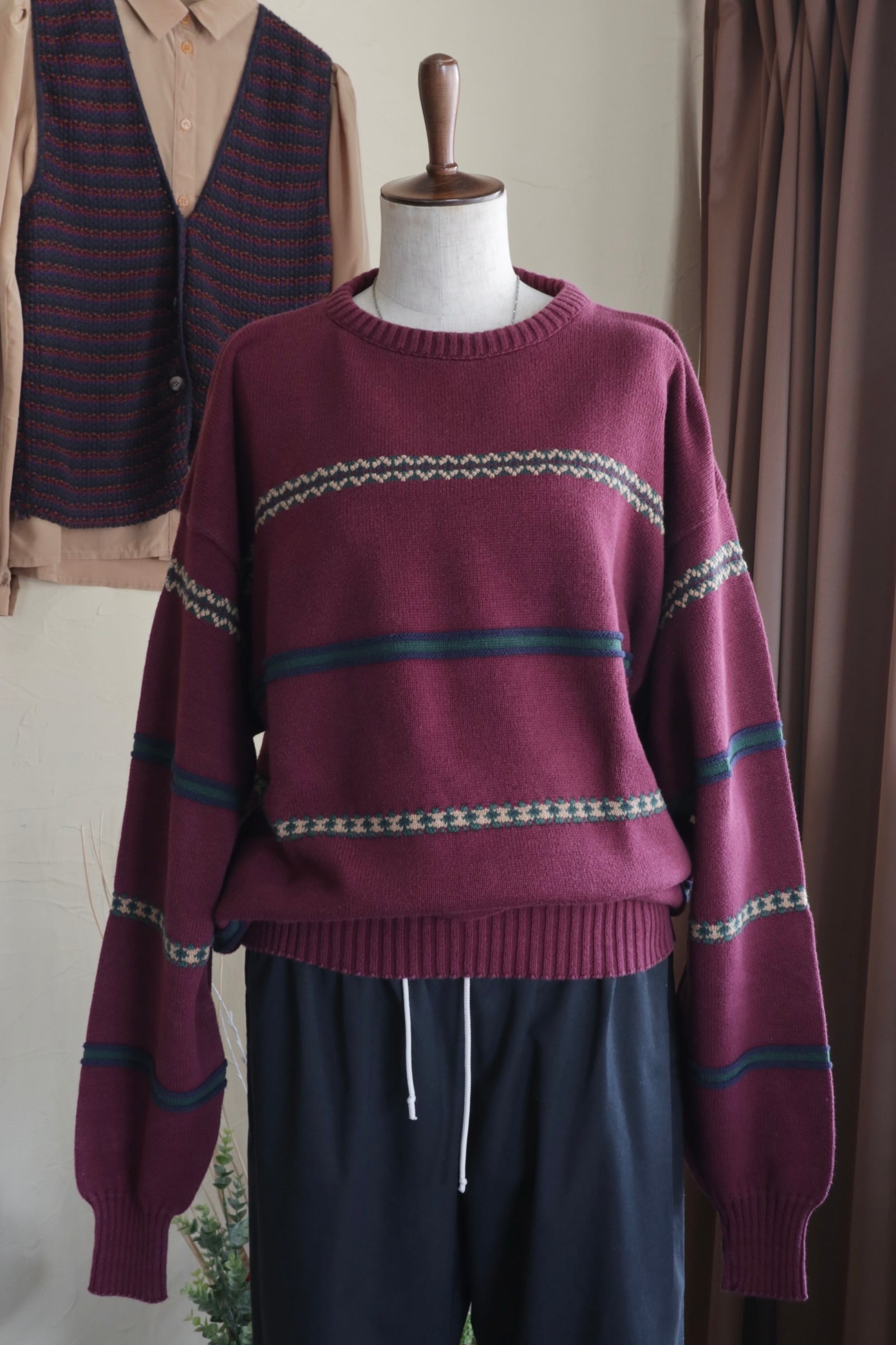 コットン ニット セーター バーガンディ